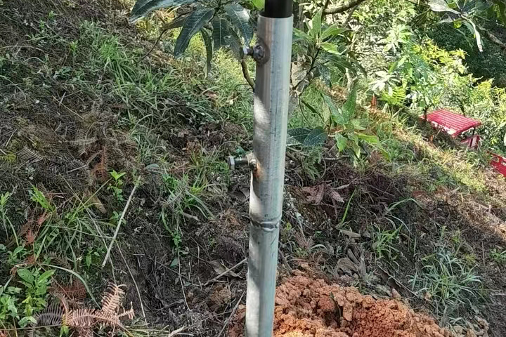 芒果果樹一般個頭比較高,為了使太陽能殺蟲燈盡量到達最大的覆蓋面積,潘師傅充分發揮主觀能動性,獨創了一種太陽能殺蟲燈安裝方法。在現有燈桿高度的基礎上,潘師傅設計了一款帶底座的燈桿套。這種設計有兩個好處:一是增加了太陽能殺蟲燈的高度,進而增加了太陽能殺蟲燈實際覆蓋面積。二是焊接了燈桿底座可以使用水泥基礎進行固定燈體,更加牢固和安全。可以說,這種設計為TFS10這款太陽能殺蟲燈的安裝和使用拓展了思路。