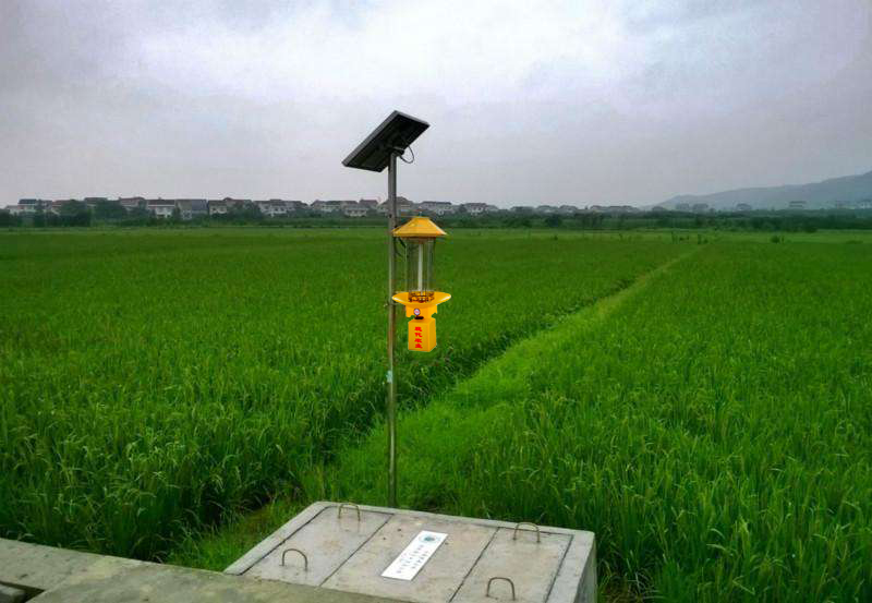 上圖:水稻田中的太陽能殺蟲燈陰天無法充電