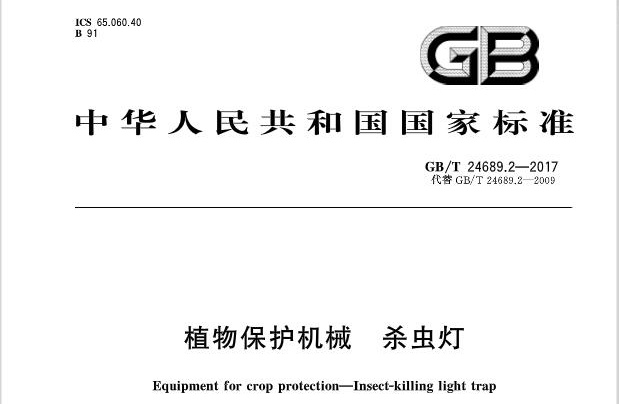 頻振式殺蟲(chóng)燈國(guó)家標(biāo)準(zhǔn):現(xiàn)行頻振式殺蟲(chóng)燈國(guó)家標(biāo)準(zhǔn)是GB/T24689.2-2017《植物保護(hù)機(jī)械頻振式殺蟲(chóng)燈》,之前使用的GB/T24689.2-2009已經(jīng)廢止,不再使用。